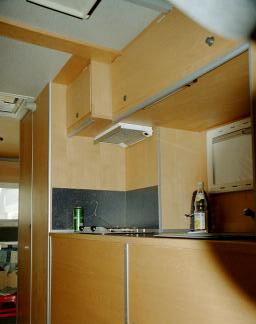 Für den Innenausbau habe ich Buche-Tischlerplatten und Buche-Sperrholz verarbeitet. Die Alu-Leisten wurden aus dem Baumarkt bezogen und entsprechend zusammengeschweißt oder genietet.