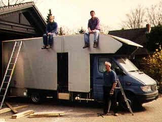 Der Kabinenaufbau besteht aus Sandwichplatten, beidseitig 1,2 mm Alu, Innenkern PUR Hartschaum,